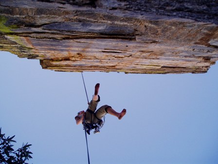Sonja leading a route on Hunchback Pinacle, same place, and rapping off the other side..