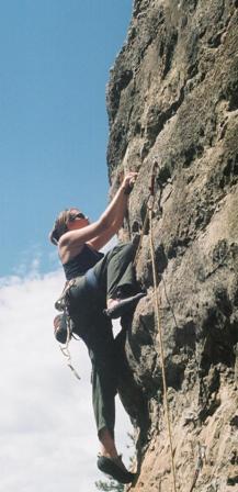 Sonja leading her first 5.9 at The Pit, 09/05..