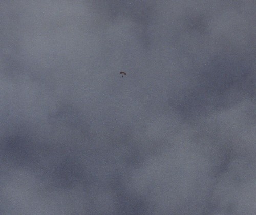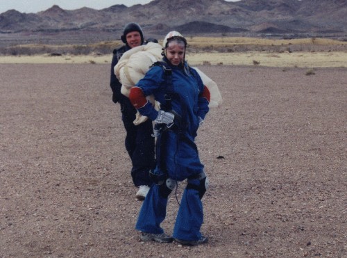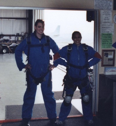 While waiting, Claire and I calculated the indention Meghan would leave on the ground if her chute didn't open.