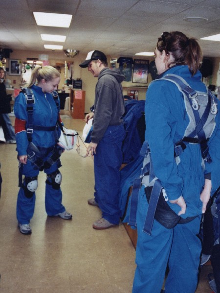 Since I was too young to go skydiving and ride in the plane, the nice guys at least let me put on a jump-suit.