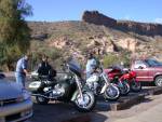 Well we finally got out from behind all traffic the other side of Tortilla Flats and rode up to where there is a dirt patch just before the dirt road starts. We stopped there for a little bit and talked with some other bikers that were taking a break there. Well it came time to start back and I had free road all the way to Tortilla Flats all I can say is I LOVE THIS ROAD wait I think I already mentioned that.