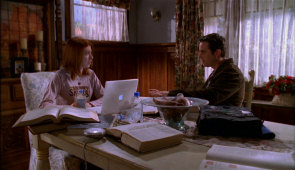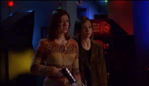 This is how much I remembered about this episode before watching again: nothing. It had been about six years from the previous time and I didn't even remember that there was a episode with Buffy invisible until I read some comments about it in a forum. To tell the truth this wasn't actually as bad episode as I expected it to be, then again it's not a good episode either. After a miracle happened and I was rooting for Dawn and actually almost liked her in Wrecker, it is now gone and my irritation and loathing of the character has returned. Dawn is once again acting like a spoiled brat with 'it's all about me'-attitude. When Buffy is gathering away things that might make Willow fall off the wagon, Dawn whines “why do we have to get rid of so many things I like”. Argh! You don't wave bottles of alcohol in front of a recovering alcoholic! And during breakfast we get more of bratty selfish Dawn, she's really getting on my nerves and she's not even on this episode all that much. What I don't understand is why does Dawn blame Buffy for Willow turning into a druggie?! Even Tara who was Willow's girlfriend couldn't make Willow cut back, so how could Buffy who was just her friend make her stop using magic(crack)?! Buffy says she was too wrapped up in her own “dumb life”, but her problems are (and always have been) much more serious than anyone else's and it's not like any of her friends paid any attention to her problems, only Xander suggested a video club to make her forget Heaven and that was it. To make her morning even better (that was sarcasm), Spike shows up and again starts harassing her. There is sun coming from between the blinds so why isn't Spike getting smoky since he's standing close to the window? But thankfully Xander comes in to interrupt Spike's harassing, he really has a good timing and it's good to see that with his small time on screen he manages to be useful, he's probably the most consistent character on the show. But on the other hand he unwittingly manages to push Buffy farther into Spike's clutches with his comment how only a complete loser would hook up with him, so Buffy can't confide in him with what's going on with Spike and get support from her friends. Like Buffy doesn't have enough problems, now she has to deal with a social service worker who thinks that she isn't fit to take care of Dawn and Spike loitering around certainly doesn't help. Buffy explaining Spike's blanket to be security blanket and then stating that “he has issues” did amuse me a little, but then comes a heavy anvil that just creates a come-on!-reaction, Willow's bag of herbs is very subtly magic weed. I know Buffy isn't the best person at making up excuses, but I highly doubt that she would have called a suspicious looking herbs magic weeds to a social service lady who can take Dawn away from her if she doesn't see her fit to be a guardian, that was beyond bad. Which brings me to a question of why is 15 year old Dawn in her 20 year old sister's care while she has a father living only two hours away, and why isn't he paying alimony? After the social service worker threatens to take Dawn away from Buffy, Spike continues to crowd her. I'm really getting tired of him and it's only the beginning of the episode. But it tells a lot about how distressed Buffy is since soon after Spike tells her how much he loves her hair and harasses her, she cuts it off and then tells the hairdresser to make her different. As usual, the pervy nerds are boring and probably the only amusing thing they do is when Andrew is afraid that invisible Buffy might be among them and gets the others to fear it too. And I still love Jonathan even though he's not one of the good guys anymore, but he does stand up to Warren on helping Buffy so it makes up for it a little. When Buffy is invisible there's a reference to Marcie (Out of mind, out of sight), so it's good to see the writers occasionally remember the past episodes. But I loved how Buffy and Anya strayed off topic into Buffy's new haircut and Anya thinking of cutting her hair. But Buffy's actions are severely out of character, the 'ghost of fashion victim's past' was pretty bad and while I did find her terrorizing the social service lady mildly funny it was still very out of character for her, it was far too mean to be Buffy. Since I never cared about the magic is drugs story for Willow and perhaps that is why I really don't care for the rehab story either, her being tempted to pick up a book with magic because she's too lazy to get up from the chair and all the bottled water to remind us that she's cutting off magic/drugs, bored now. But my liking of Willow is returning and it is good to see her doing something useful like research. But she shows how clueless she is when she asks Xander, “Buffy is broken?” I really didn't need to see Spike humping “thin air” and another out of character moment from Buffy comes when she is “playing” with Spike (biting his ear for example) in front of Xander, despite being invisible I find it hard to believe that it would be something that Buffy would do. After his little speech of how he doesn't want to be Buffy's dirty little secret, Spike doesn't seem/sound very set on her leaving and his “that's cheating” is in no way 'No', he makes no move to stop her or even look put off. Another genius moment from Dawn as she sneaks back to the house after dark and to make her more helpless, she has a broken arm. She really likes to live on the edge. And if her acting bratty at the beginning of the episode and Spike annoying the time after that wasn't enough, now she's once again acting out because Buffy is invisible. Well, while Willow was annoying the hell out of me in the previous episode, now she's winning my affection back. It's good to see that she has something useful to do other than remind the viewers that she's going through the jitters of not using magic(drugs). Her getting captured and later kept captive looked prett