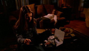I would like to know what the text at the beginning meant. Was the name of the episode as a title with November 12th 2002 and 8:01 pm some kind of psychiatrist session thing or what? Just a slightly irrelevant question. The first time I saw this episode (about 5-6 years ago) I didn't like this because of Buffy blaming herself on everything, the shrink vamp saying she has a superiority complex (because to my knowledge she doesn't have one) and because it was said that she was attracted to men that hurt her, that she sought out the pain they brought (that statement including Angel), but now that I've seen it again after a long break, I think this is a great episode. Okay, I'll start with Dawn. I'm someone who very rarely likes Dawn, but during the season seven I actually like her more than find her annoying waste of space she was during the sixth season. Dawn being home alone without whining is refreshing and everything she does is kinda cute. It's established that Dawn has stayed friends with Kit, it's a good thing that she has her own friends outside the scoobies and the moron that introduced her to the vamp in All the way. The haunted house with thumping, strong wind, TV working even after pulling the plug, cheerleading chairs, black outs and bloody writing on the wall was creepy in a horror movie way and it gave a sense that it was terrifying for Dawn. Plus the growling was very creepy. It's actually sad that Dawn thinks it's her mother trying to reach her (but is stopped by the other thing in the house), because I highly doubt that Joyce would scare her like that and write to the walls with blood. It's good that Dawn does something to save her “mother”, but I don't think a spell to banish some evil demon/spirit is really that “easily” done by someone who has no real experience with magic, so I think it was all just smoke and mirrors by the First and the ethereal Joyce was really it trying to fill Dawn's head with doubt while mascaraing as someone she loves, trusts and misses. What else would explain Joyce saying “Buffy won't be there for you.” “When it's bad Buffy won't choose you. She is against you”, it clearly makes cracks into the bond between her and Buffy, making Dawn mistrustful of her sister there by driving Buffy away from her family and into isolation. Joyce has to be the first or her words just don't make sense and they aren't explained. But how could Dawn believe that since Buffy has already sacrificed her own life to save hers? Just doesn't make sense to me why it's Cassie that shows herself to Willow since they didn't have any emotional connection because they had never met while she was alive. But it's good to see Azure Skye again, she does great job with Cassie. And I love Amber Benson for her reasons for not doing this episode because it would have been just so disconcerting (for the fans) to see Tara as evil thing manipulating Willow and it really would have messed with Willow's head so much more than seeing Cassie. Also Alyson Hannigan scored some major points for Willow with her acting as she realizes it's Tara “Cassie” is talking about. Willow scenes are very moving, I feel ten times more sorry for her than I did at any time during Villains, Two to go or Grave, and it is good to see that she still misses and grieves Tara. The big bad is playing with Willow's grief over Tara and her fear that the power she has will take over and she will hurt or kill the people she cares about. And I love the moment when Willow realized that it's not Tara she's talking to and the bad guy taunting her is effective. Great acting from both Alyson and Azura Skye. And then we have Buffy. Don't really understand why she gets so beat by the vamp, but I love the moment when the vamp (Holden) recognizes her, it's so unexpected turn. And I just love the interaction between Buffy and Holden, she's so relaxed and smiling in his company and they have a great chemistry. We get a “dated a really old guy” aka Angel mention and Scott Hope is declared to be gay, I strongly suspect that's a reference to the actors role as the rat-face slimeball Ethan in Queer as Folk. Holden is charming and funny, Buffy clearly likes him and feels bad that she has to kill him, but she also knows that he is unrepentantly evil and looking forward to killing people. But even though her shrink is evil and dead, it is good for Buffy to talk to someone even if he's there to kill her, not to judge her. Buffy is blaming herself for everything, feeling bad for what she's done to her friends and what she did with and to Spike, is very in character since she's had that habbit from the beginning (like blaming herself for not being able to save Jesse in Welcome to the Hellmouth while she did save both Willow and Xander), but it would be strange and un-Buffy-like for her to blame anyone else (even if she had a reason to). But that doesn't mean that I have to like the blame-fest. Even though there are a lot of things that bug me about the therapy session, they do bring a lot insight into Buffy's feelings about season 6, how she didn't want love and felt she didn't deserve the power being a slayer gave her. And why is what Buffy had with Spike referred as a relationship? Even though few times during the nearly seven years of BtVS Buffy has used the “I'm the slayer” explanation doesn't mean she has a superiority complex, she doesn't act like she's better than everyone else and she really does have abilities and responsibilities that no one else has, she has to make hard decisions that no one else makes or wants to make (like Xander refused in Selfless). It's not a superiority complex, it's just a hard fact. Holden cried out superiority complex when Buffy stated that she wasn't enthusiastic about the fight because she knew she was going to win, she knew her abilities and trusted herself and in the end it did happen, she had to kill Holden and she won even if it was a bitter victory. This was a very acting o