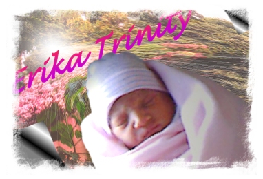 Hi everyone! For this day, I wanted to post a congradulations to my buddy Vanessa. She had a beautiful baby girl, named Erika Trinity Medina. Here's a pic of her only 2 or 3 days old that I fixed up for Vanessa in Photo Shop. Isn't she beautiful???