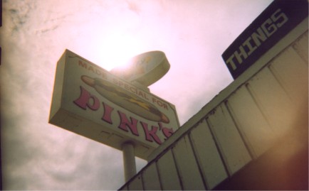 Pink's hotdogs in L.A. right before some queer on a bike informed us we were murdering animals