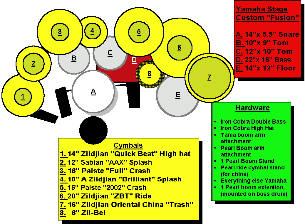 I have changed tom heads to: Evans Clear G2s(batter) and Evans Clear G1s(resonant), on my 12"x8" I have an Ebony Pinstripe. Snare is a Remo Fiber Skyn. Bass drum is Power Stroke3 with a foam muffling ring. Go Back To Main Page