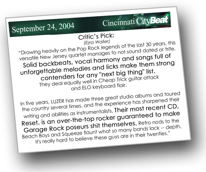 In a strange way, creating well-crafted rock & roll with a pop sensibility in the year 2005 may be one of the most daring moves a band can attempt. But if anyone is up for the challenge, it is the New Jersey based LUZER. Taking the essence of great rock & roll from the last fifty years and spinning it into a refreshing original sound, LUZER has seemed destined for greatness since the band formed in the final days of the last millennium.