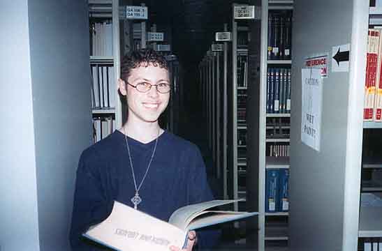 | This is the 2001 All-State Honor Bands. This year the Meek Band had five members make the honor bands and three members make alternates. | This is Tyler Overton. He was one of the All-State alternates. In this picture, he is on the fourth floor of the Auburn Draughton Library, holding some kind of college physics book he found. |