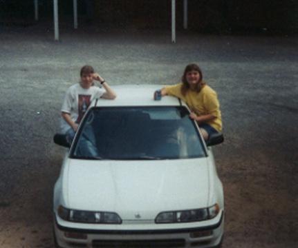 | On the left is Josh Williams, a former french horn player for the band. To the right is Nikki Thompson. | This is Melissa Harrelson and Nikki Thompson sitting in Nikki's new car. |