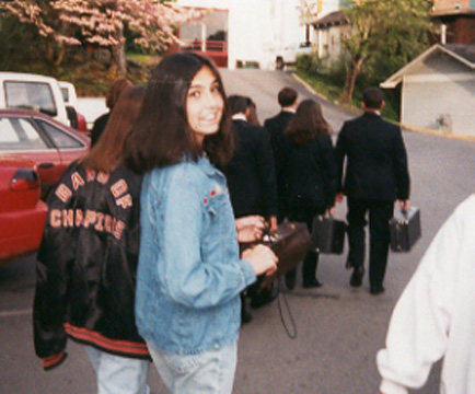 | Here's Nikki in a hotel room during a spring trip to Gatlinburg when she was in seventh grade. | This is our band director, Nancy Frith. |
