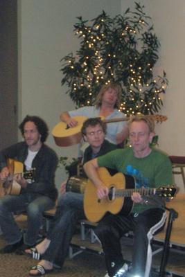 Sav: "Everyone together now! (Starts to strum his guitar and sing a Christmas song) O Christmas tree, O Christmas tree, how beautiful your branches are!"