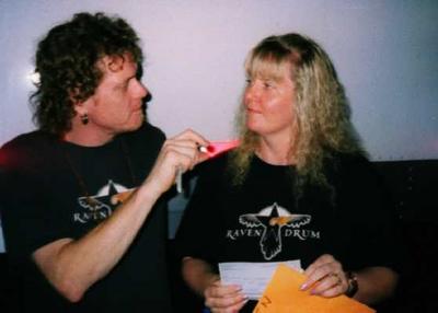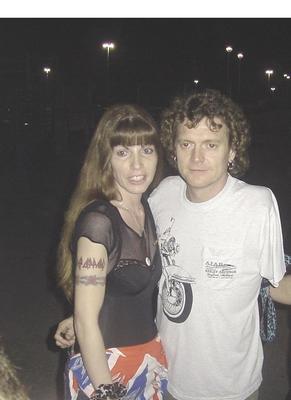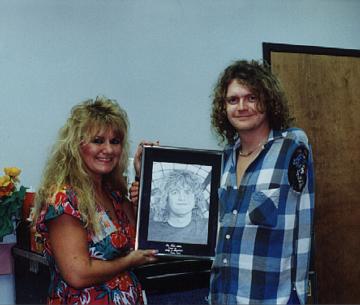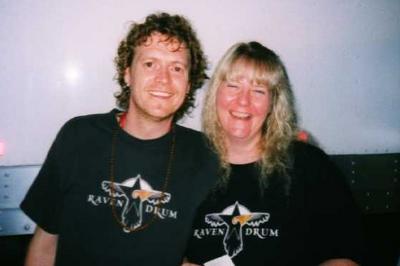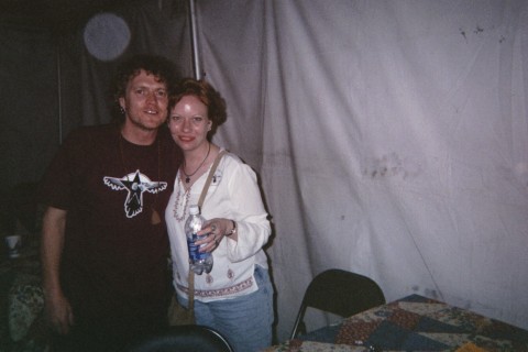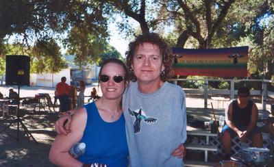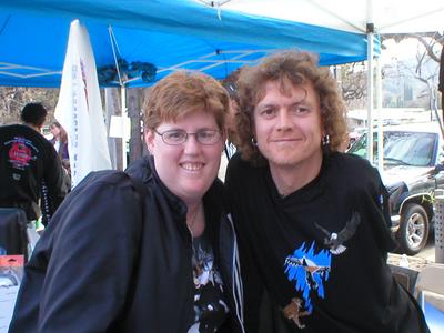 Karie, Rick, and her Thunder God banner, 8/30/99