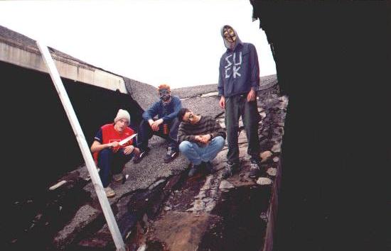Le regard blanc avec le couteau qui apartenait a Micheal Myers cé notre chanteur(yan),lé cheveux rouge (orange)cé le Bassist(alex),le rayer pencher cé Marc(drum) pis le suck cé Mart.