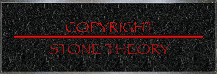 All art work and graphics are the original and sole property of Stone Theory Music except for the following: -Guest Book Link Page: The animated .gif files of the page turning book, and the green flickering candles (2) animated .gif files. These files were obtained from the Angelfire web building graphics library, and are royalty-free to the best of my knowledge. -Background of Website- background tile also obtained