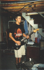 RICK AT BAND PRACTICE IN DAN'S BASEMENT.