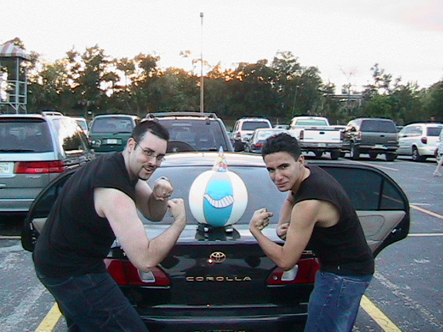There he is flexing with Geo and me God what a great trip that was.....Busch Gardens was great with him......Anyway stay tune for more Senor Beach Ball Adventures! |