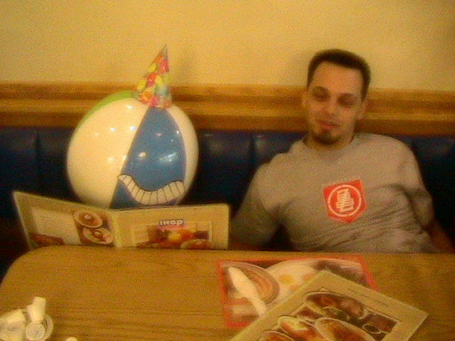 On The Way to Tampa We Stopped at Ihop There is Senor Beach Ball Hanging with Me Alf and Danny |