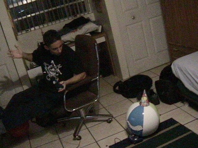 Here is Senor Beach Ball at home. He just beat Danny in a Video game.....Damn he is so Good......its cuz he's Senor Beach BAlll of Course! |