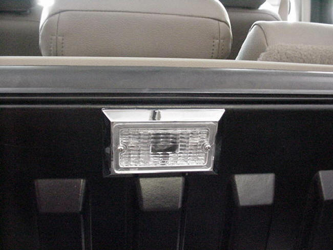 What I decided on, was a near-flush auxiliary light [Pep Boys] that functions with the high mounted cargo light. A flush type mount was chosen to avoid damaging the light by over size or heavy loads. The light resides protected above the raised verticals, on the forward part of the bed. In reality, the new bed light will energize anytime the cargo light is on. A nice feature in as such the bed light can be energized with a push of the door remote control [2004 models]