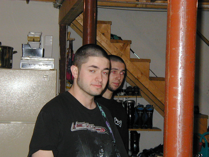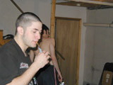 Chris is one of the guitar players for SINDICATE!. He went with everyone (but me) to Metalfest and to see In Flames in a small bar in New Jersey with Ali and the Owens brothers. Chris also is a long standing member of PRODUCTIVE THURSDAY! and still has movie privleges. He has seen some of the worst movies in the world which include "Gates of Hell" "Gates of Hell 2" and "Inseminoid". He is also has the privlege of getting to try out my inventions first and being able to work with me. FIGHT THE MACHINE CHRIS! |