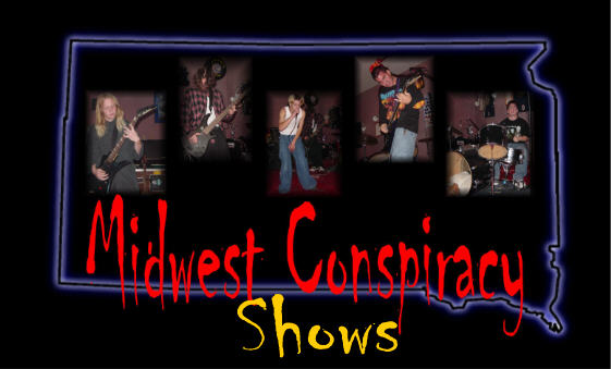 September 21, 2002 / 7 p.m. / 4U Store, Box Elder, South Dakota Silence of the Redeming Hour (Nebraska) American Heavy Metal Weekend (Local) Midwest Conspiracy (Local - 1st Show!) October 9, 2002 / 7 p.m. / 4U Store, Box Elder, South Dakota Replicator (Oakland, California) Midwest Conspiracy (Local) October 13, 2002 / 7 p.m. / 4U Store, Box Elder, South Dakota Three Minutes From Home (Kalispell, Montana) Not Long After (Portland, Oregon) Dark Nation (Local) Midwest Conspiracy (Local) October 31, 2002 / 7 p.m. / 4U Store, Box Elder, South Dakota Blood Dries Black (Fargo, North Dakota) Dark Nation (Local) Midwest Conspiracy (Local) Back to Main Page