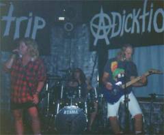 This was truly in the olden days. That's Billy Cooper on the drums. Bret had hair, we were in high demand. Here we we doing a show with 10 Days Late, an all-girl band from Vancouver.