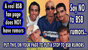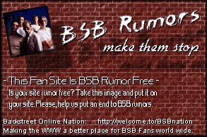 OKAY, i know why you're here, you know why you're here, we all do. you're here because all these rumors that are going around are going too far. BSB deserve respect, and the rumors that have been spreading through the internet are not at all respectful. That's why we should put an end to all the rumors. These rumors are affecting their images, personalities and their lives. For instance, awhile back, Brian actually had to come on tv and say that one certain rumor wasn't true. Also, the whole group had to come on tv and say something about it, that's how bad it's gotten. These rumors can be very destructive to their reputation and it also hurts their feelings personally, which most people don't think about. So put an end to the rumors. They must be stopped. To support this, please take any or all of these banners at the bottom of the page, and put them on your site. It's the least you can do to help out the guys and everyone else who loves and supports them.
