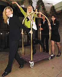 Here is the reigning Miss Canadian Universe with some of the 2000 contestants are they arrive at the hotel.