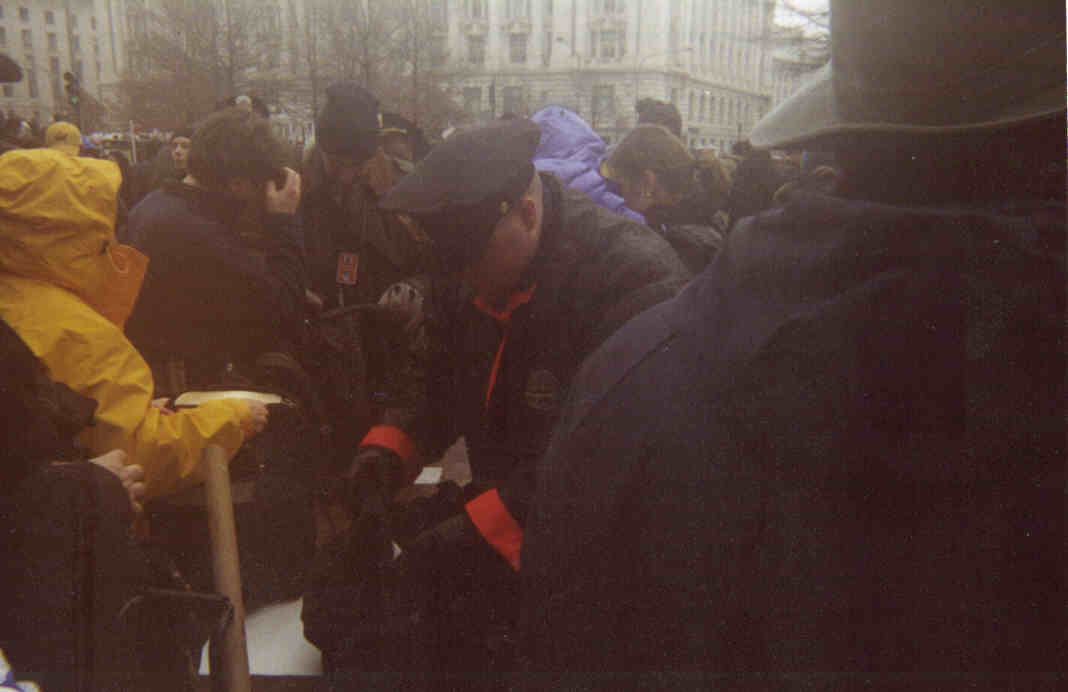 (left)Waiting to go throught the checkpoint.(right)Security, looking for weapons such as magick markers.