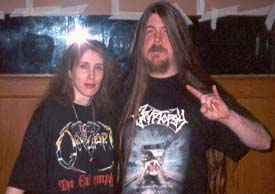 HB Oh future plans, well of course there are many. As I may have mentioned the primary plan at this point actually is working on new material for our second album. We've got a lot of material near completion, a couple songs that are completed. We've still got a bit of work to do but we've got a lot of songs that are written and just not quite put together yet. I can give you an exclusive scoop on a couple of new titles if you like. Incinerated Faithful which you'll hear tonight, and then Kill For My Master which you won't hear tonight but you will hear soon. Other plans are just to keep playing around. We're trying to concentrate more on getting the new material done than playing a lot of shows but we're still playing. Good shows when we can. We're going to actually be playing a show in Seattle in May, I guess with a couple of underground bands from across the globe - Vomit Remnants from Japan and Morgue from France and a couple other bands that I guess are touring with them so that's going to be sick. We've also got a show in Portland in June with Impaled from San Francisco with Engorged Raven, a couple bands from the Portland area. Trying to set up other killer shows. Probably hopefully try to do a little more touring before the year is out but we don't have anything set at this point.