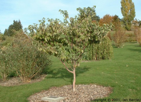 Cornus controversa at the University of Idaho Arboretum, Moscow, Idaho. This specimen looks very different from the ones growing in partial shade at the Washington Park Arboretum in Seattle.
