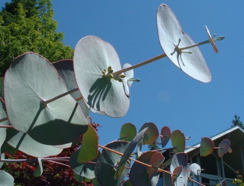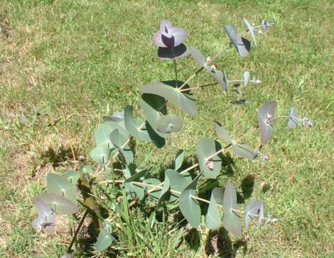 Flower buds starting to develop on the juvenile growth of the Tasmanian form of E. perriniana in my garden. In habitat these Tasmanian plants are subjected to brush fires every few years and never reach a very large size, so they must be able to reproduce when young to perpetuate themselves. They do regrow after the fires from the lignotuber and individual trees can live more than 500 years this way.