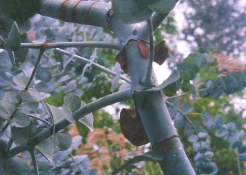 A somewhat closer shot of the leaves and stems of the above tree.