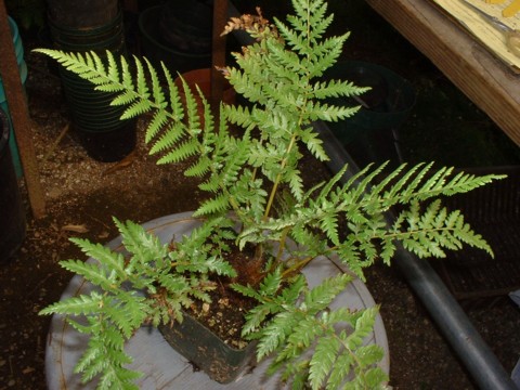 Sporeling of Dicksonia antarctica at Fancy Fronds Nursery, Gold Bar, WA. Photo by the author.