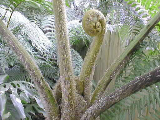 Uncurling crozier of Cyathea brownii covered with attractive light brown scales. On older plants a large number of croziers expands at once, making for quite an imposing sight. Photo courtesy of Scott Ridges.
