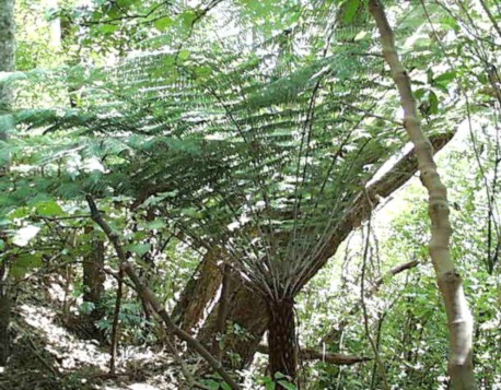 Cyathea dealbata in habitat on New Zealand's North Island. Anonymous photo.