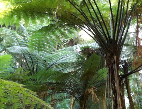 Crowns of Cyathea dealbata in habitat in New Zealand. Photo courtesy of Peter Richardson.