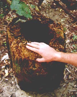 A slab of trunk of Cyathea medullaris. Treefern trunks are handy for growing epiphytic ferns and other epiphytes on. Photo courtesy of Ralph Booth.