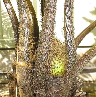 This treefern from India, Thailand, China, Taiwan, and Japan remains rare in cultivation outside of Asia. It requires a moist, sheltered position to thrive, but is also able to recover from harsh treatment. In one instance it was allowed to dry out and yet grew back, though slowly. The 10' fronds are dark green and finely divided, held in a graceful arching habit, and the slender trunk is able to reach a height of about 20'. It has a vigorous root system and may not be very well adapted to pot culture, but it does seem to have at least a few degrees of frost tolerance. It adapts best to a summer-moist climate, thriving from Kathmandu to Japan.
