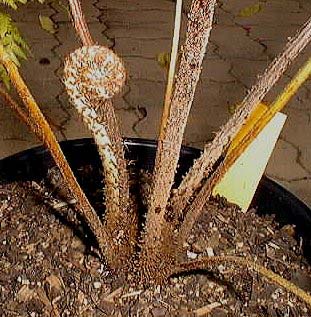 This species is esteemed for its ease of growth and tolerance of a wide range of soils and conditions. The fronds may reach up to 8' long and are covered in very dark scales, and the trunk grows to about 12' high. It is related to Cyathea australis, but is probably somewhat less cold-hardy (guessing 26°F), and must be kept well-watered for it to look good. A native of moist forests in northeast Queensland, Australia.