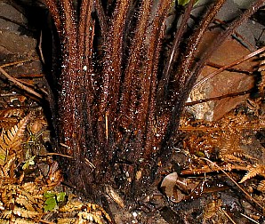 Dicksonia youngiae, base of young plant, photo courtesy of Scott Ridges.