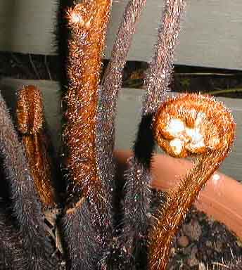 Dicksonia youngiae, uncurling croziers, photo courtesy of Scott Ridges.