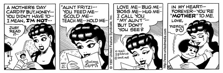 Ignore the strange little girl in the above comic strip. IT'S ALL ABOUT AUNT FRITZI!