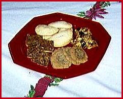 She baked over 30 varieties for Christmas 1999 gift giving. Schmitty gives away 'care packages' to friends, relatives, even the good folks at her Doctor's office. She is one of those people that brighten all our lives. She has been kind enough to share her recipes here on Growlies. She has had us all 'drooling' so if you haven't had time to make ALL her recipes, here is a glimpse of some of her famous cookies! These cookies are clockwise