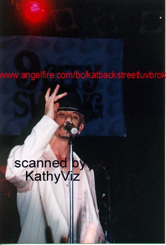 Me (Kathy) and Heather went to the Last Johnny No Name concert here in New York City April 9th 2000, held In Irving Plaza. Since I knew that It was general admission only, I asked my father to drive me there early in the morning. Well, we got there around 8-am In the morning. I stood outside Irving Plaza In the COLD, RAIN & SNOW! can you believe it, it SNOWED!!. It sucked!!! I can't believe I put myself through hell for each BSB! But anyway, I stood out there all day until 4-PM when My father brought my bro to wait online, while I went back home so I can eat and change to my new cloths! I was soooo red! I was so cold! I literally couldn't feel my fingers!