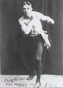 Philadelphia Pal Moore was a member of the famous "Fighting Moore Family" which included brothers Willie, Redy, and Frank. He was born Paul Von Franzke October 1891, in Germany. He began his professional career in 1907 in Philadelphia. By 1909 he had invaded New York and began to draw attention. By 1910, he had hit the big time. On February 1st of that year he stopped Henry Miers in Boston prompting ex-heavyweight champion James J. Corbett who was in attendance to heap praise on Pal. On May 25th Pal scored an upset six round newspaper verdict over the heralded Jim Driscoll. In his last five bouts for 1910 he twice met Owen Moran losing a newspaper decision and then holding Moran to a draw. He then lost newspaper verdicts to Abe Attel, Harlem Tommy Murphy, and Tommy Langdon.