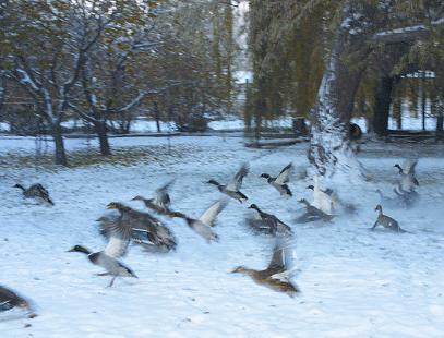 "So much depends upon the steel shopping cart, frosted with snow, standing beside the brown mallards," as poet William Carlos Williams almost said.