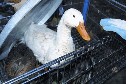 The most veteran duck shopper of the team is Chris Porter, who uses special gripping gloves and gently "folds the wings in, moving the hands over the head." Once their vision is blocked, they calm right down. Porter also extolled the entertainment value of ducks.