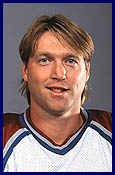 When Colorado Avalanche Goaltender Patrick Roy was 7 years old, he used to take his father's belts,wrap them around two pillows, and attach them to his legs. Instant goalie pads!Then Stephane,Patrick's 4-year old brother,would take a stick and smack tennis balls at him in the hallway of their house.Very few tennis balls got past Patrick. And today 27 years later very few Pucks get past him! Patrick has been voted the NHL's top goalie three times. Patrick began playing hockey in his hometown of Quebec City Quebec, Canada, at age 6. At first, he preferred scoring goals. But one day one of the neighborhood goalies was hurt, so patrick volunteered to play goalie- and liked it. He's been goalie ever since. Growing up, Patrick played goalie for midget and junior leagues. When he was 19, the Canadiens made him their fourth-round pick in the 1985 NHL draft.Even though he had grown up rootng for the Quebec Nordiques, he felt lucky to have been drafted by the Canadiens, who have a long, proud history in Canada."it was a dream come true, to be playing in my province and for Canada's team," Patrick says.In the 1985-86 season, patrick's rookie season, he led the canadiens to their 23rd stanley cup championship. He allowed an average of 1.92 goals per game during the playoffs and was voted the MVP. Seven years later, he led the Canadiens to another cup and won his second playoff MVP award. Patrick may be one of the most superstitious hockey players in the league! Patrick will not skate on blue/red lines, he writes the names of his kids on his stick before each game.He talks to his goalposts. he calls them his friends and tells them not to allow any small, black objects (like pucks) inside! That may sound silly but if you're a goalie, you need to have positive thoughts in your head. "A big part of the game is played between your ears," Says Patrick. Patrick Roy was traded by montreal with Mike Keane to Colorado for Jocelyn Thibault, Martin Rucinsky and Andre Kovalenko on December 6th 1995. Roy was one of the only five NHL players who was considered a "Franchise player" Roy was voted Denvers top Athlete in 1997. Patrick also is part owner of the Quebec Ramparts of the QMJHL. Roy is a big contributor to the Ronald McDonald house. People consider Patrick Roy one of the best goalies in the game today, and he has proven that with three Stanley cups, Two Conn smyth Trophies and three Vezina awards.