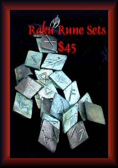 Each set comes with a beautiful handmade velvet pouch, and protective talisman, and meditative incence. Raku Runes will not be exactly as depicted. They are available in rectangle, diamond shape, neutral finish (clear) and a natural finish which allow you to shade them as you wish. Please allow 4-6 weeks from the date your order is confirmed. Shipping and tax not included.